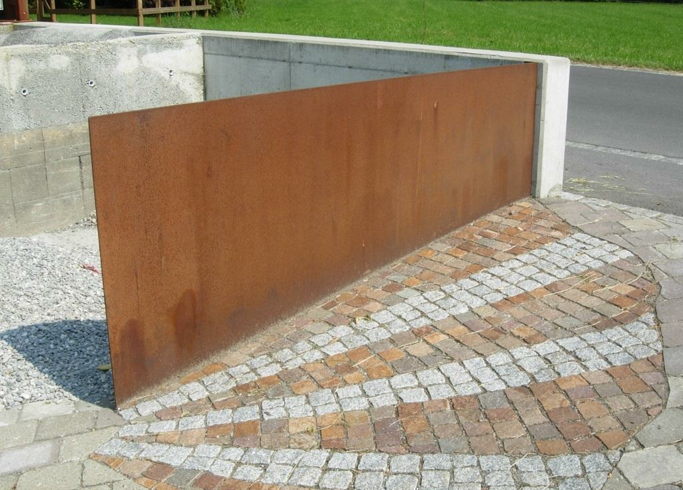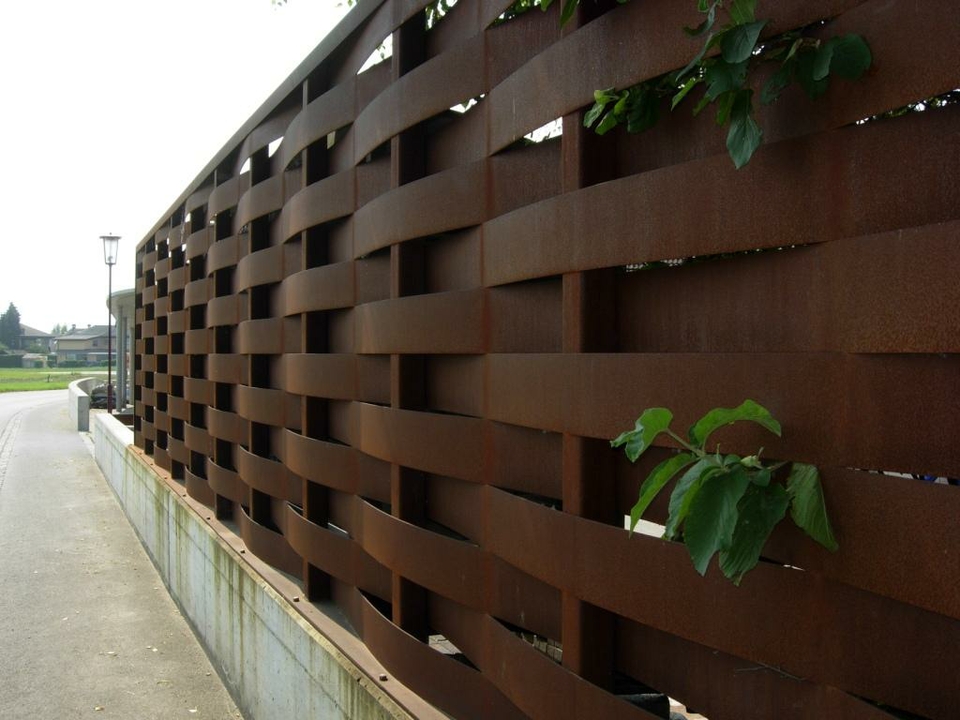 Sichtschutzwand aus geflochtenem sowie witterungsbeständigem Cordenstahl.