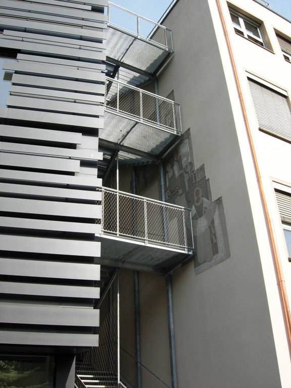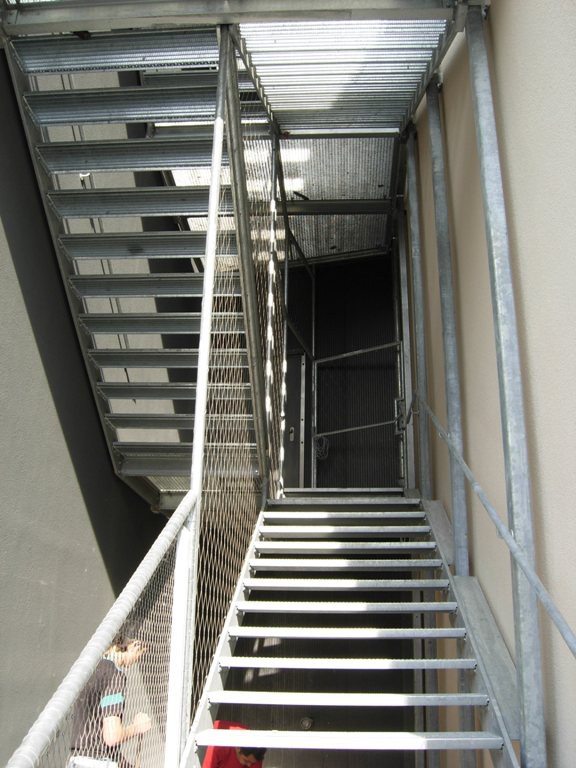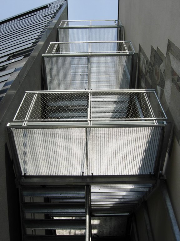 aus einer verzinkten Stahlkonstruktion und Geländer mit einer Edelstahlnetzfüllung