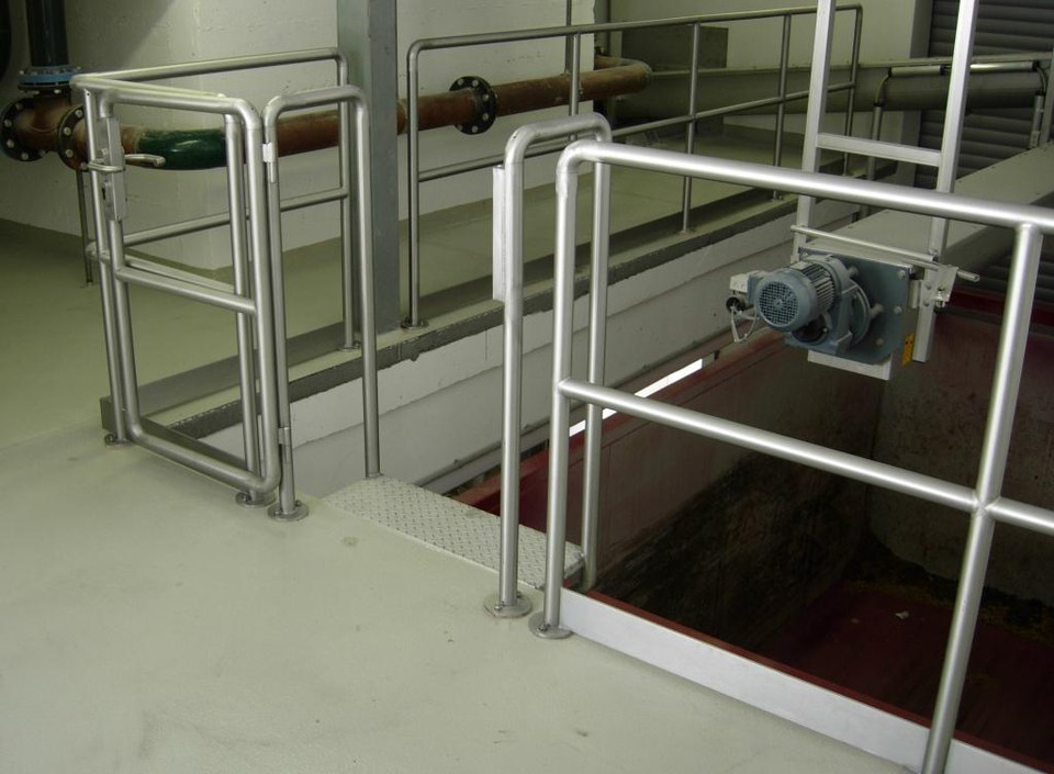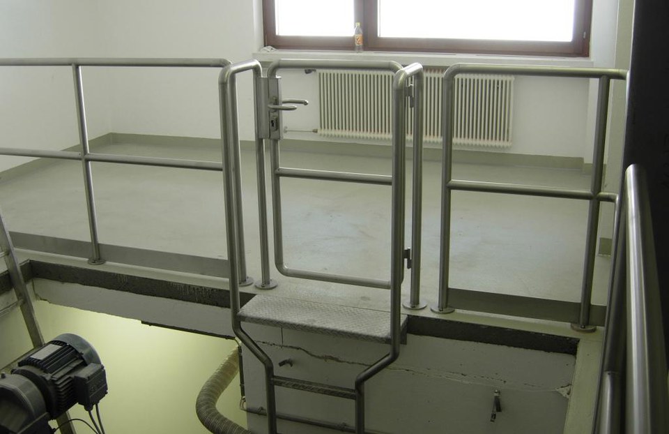Geländer aus Edelstahl gebeizt.